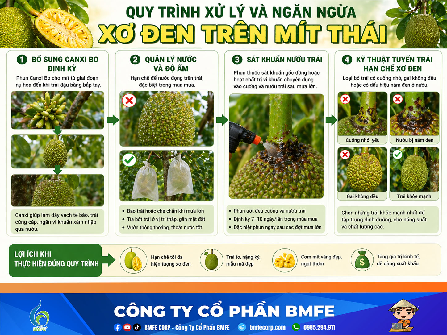 Hiện tượng xơ đen không chỉ làm giảm chất lượng trái mà còn khiến thương lái từ chối thu mua, gây thiệt hại kinh tế nặng nề. Hiểu rõ nguyên nhân mít thái bị xơ đen và áp dụng quy trình phòng ngừa từ sớm là cách duy nhất để bảo vệ vườn mít của bà con trong mùa mưa này.