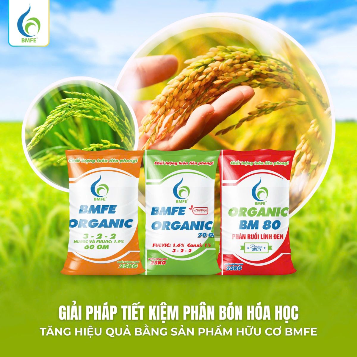 Phân bón hữu cơ BMFE Organic là dòng sản phẩm tiên tiến giúp nông dân giảm chi phí phân bón hóa học, đồng thời tăng năng suất và chất lượng nông sản. Với công nghệ sản xuất hiện đại, BMFE mang đến nguồn dinh dưỡng tự nhiên, an toàn và thân thiện với môi trường, giúp đất đai ngày càng màu mỡ và cây trồng phát triển bền vững.