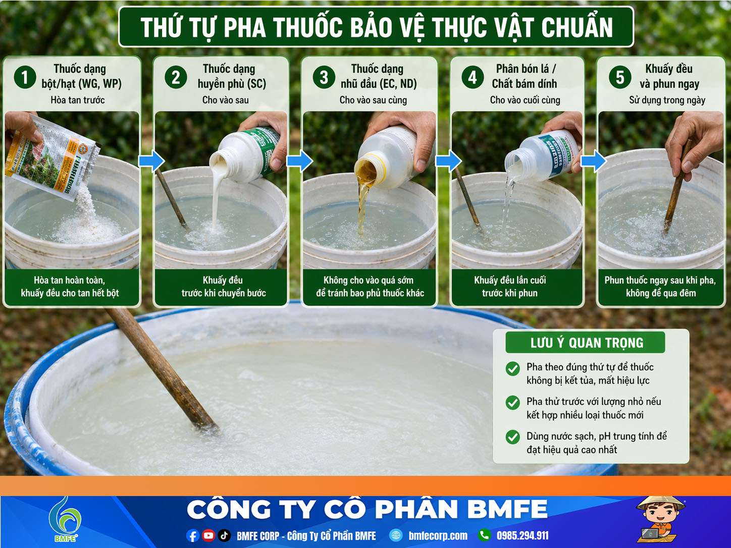 Thứ tự pha thuốc bảo vệ thực vật chuẩn