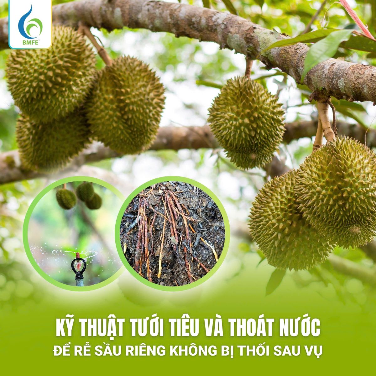 Giai đoạn sau thu hoạch thường trùng với mùa mưa hoặc thời điểm chuyển mùa. Nếu hệ thống tưới tiêu không tốt, cây sầu riêng sẽ đối mặt với 2 nguy cơ lớn: